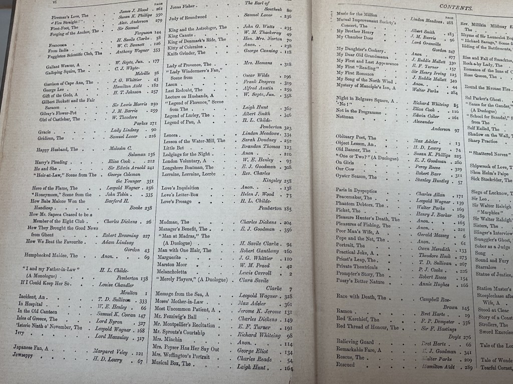 The Century Reader was compiled by H. Savile Clarke and Leopold Wagner and published in 1895, just a few years after Three Men in a Boat. It contains 332 texts to be memorised and recited: poems, dramatic narratives, and dialogues – many of which stretch over multiple pages.